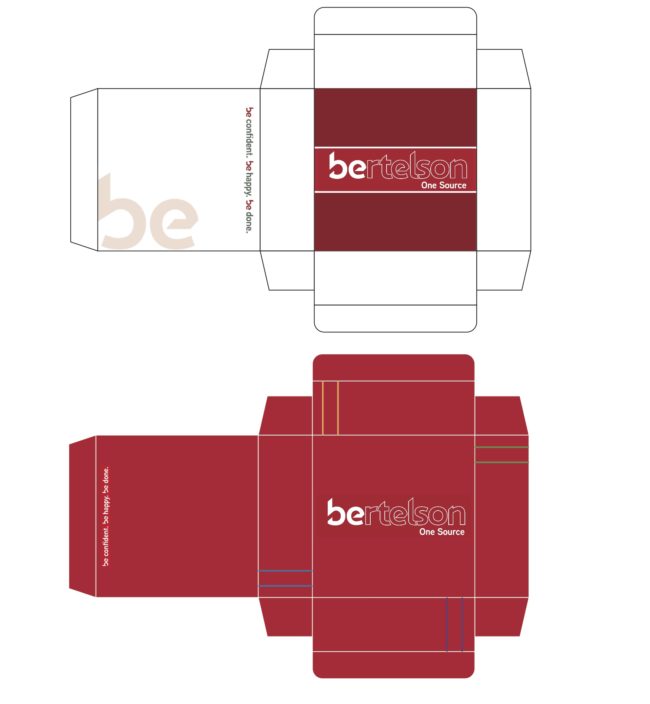 Package Design – Created and designed a container for Bertelson Office Supplies with printed graphics to send out the annual office catalogs. These package designs were branded to define our simple and clean identity system.